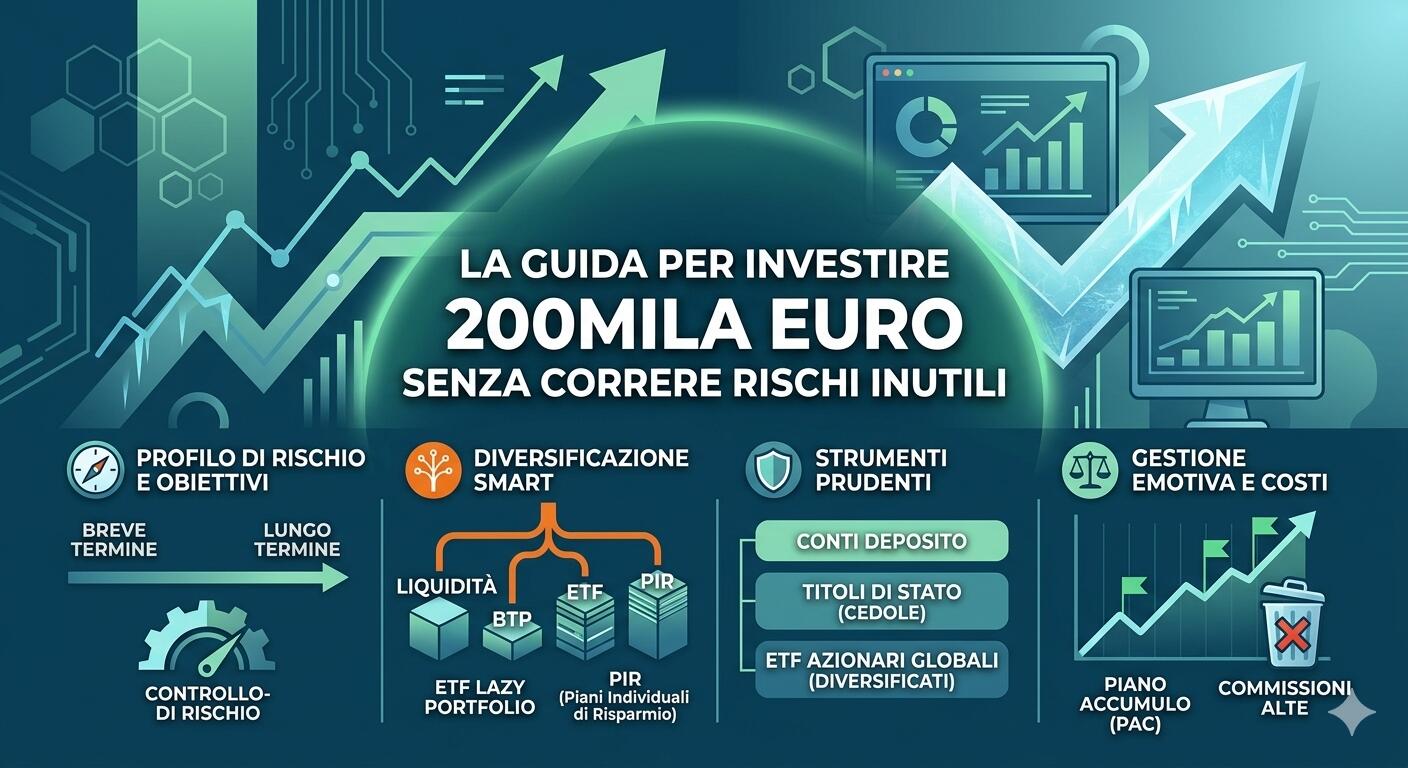 La guida per investire 200mila euro senza correre rischi inutili. Consigli pratici, e vitali, per non sprecare il patrimonio e provare a costruire un reddito nel tempo.