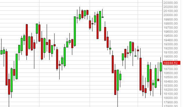 Nel corso della sessione di scambi di giovedì, Piazza Affari si muove inizialmente al ribasso, andando a testare la maniglia a quota 18.000. In questo caso il mercato è stato però respinto e sul grafico si è venuto a formare un imponente martello. Questa formazione grafica ovviamente segnala un forte livello di supporto; crediamo perciò che un’eventuale rottura rialzista del top del martello rappresenterebbe un forte segnale di acquisto, che potrebbe portare il mercato fino alla maniglia a quota 19.000, per poi dirigersi eventualmente fino alla maniglia a 20.000. Eventuali pullback rappresentano in questo momento delle opportunità di acquisto sui grafici di breve termine.