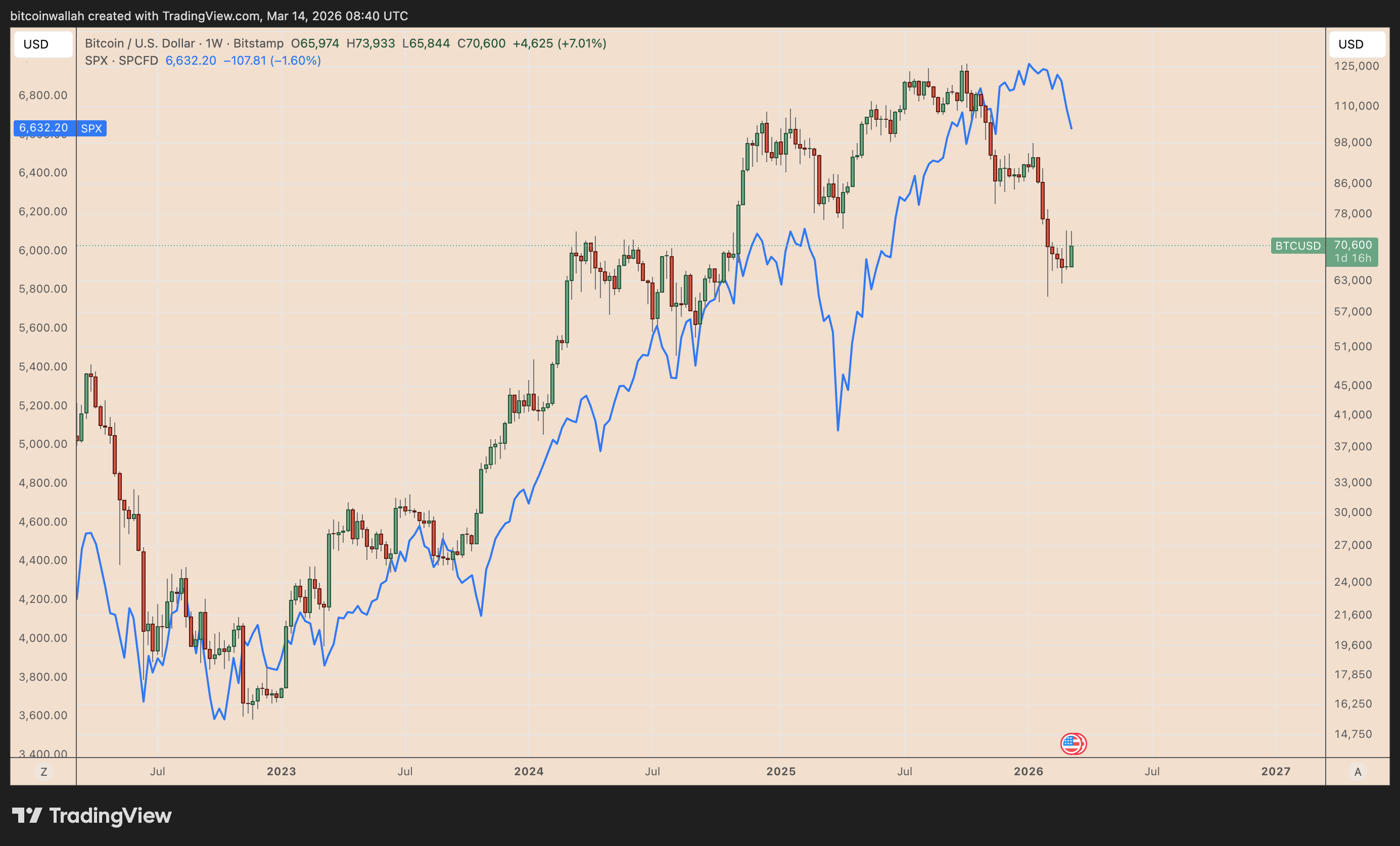 XRP ha sovraperformato le azioni USA nella settimana terminata il 15 marzo 2026, salendo di oltre il 4% mentre l’S&P 500 ha perso l’1,60% nello stesso periodo a causa dei timori d’inflazione legati al petrolio.