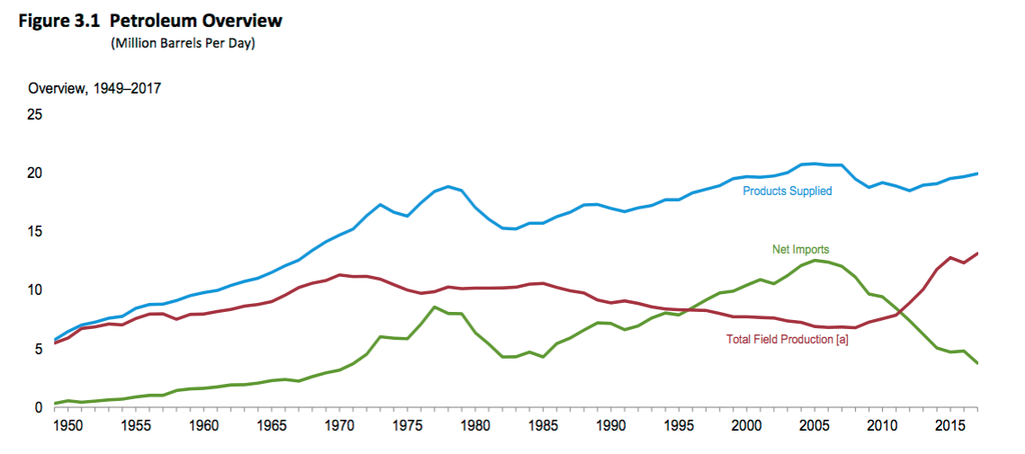 Il precedente record storico di 10,04 milioni di barili giornalieri stabilito nel 1970 è stato superato nel mese di novembre 2017, ed ormai da giugno viene costantemente aggiornato a rialzo con gli USA che si propongono come il primo produttore mondiale davanti a Russia ed Arabia Saudita.
