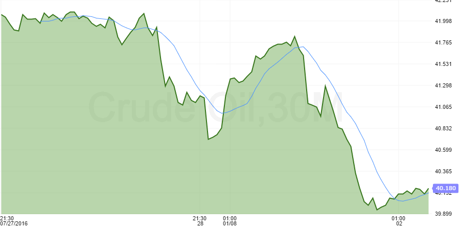 Nella giornata di oggi, il greggio è risalito dai minimi per venire negoziato a quota 40,20 con un modesto guadagno di circa 15 centesimi. Il ribasso del