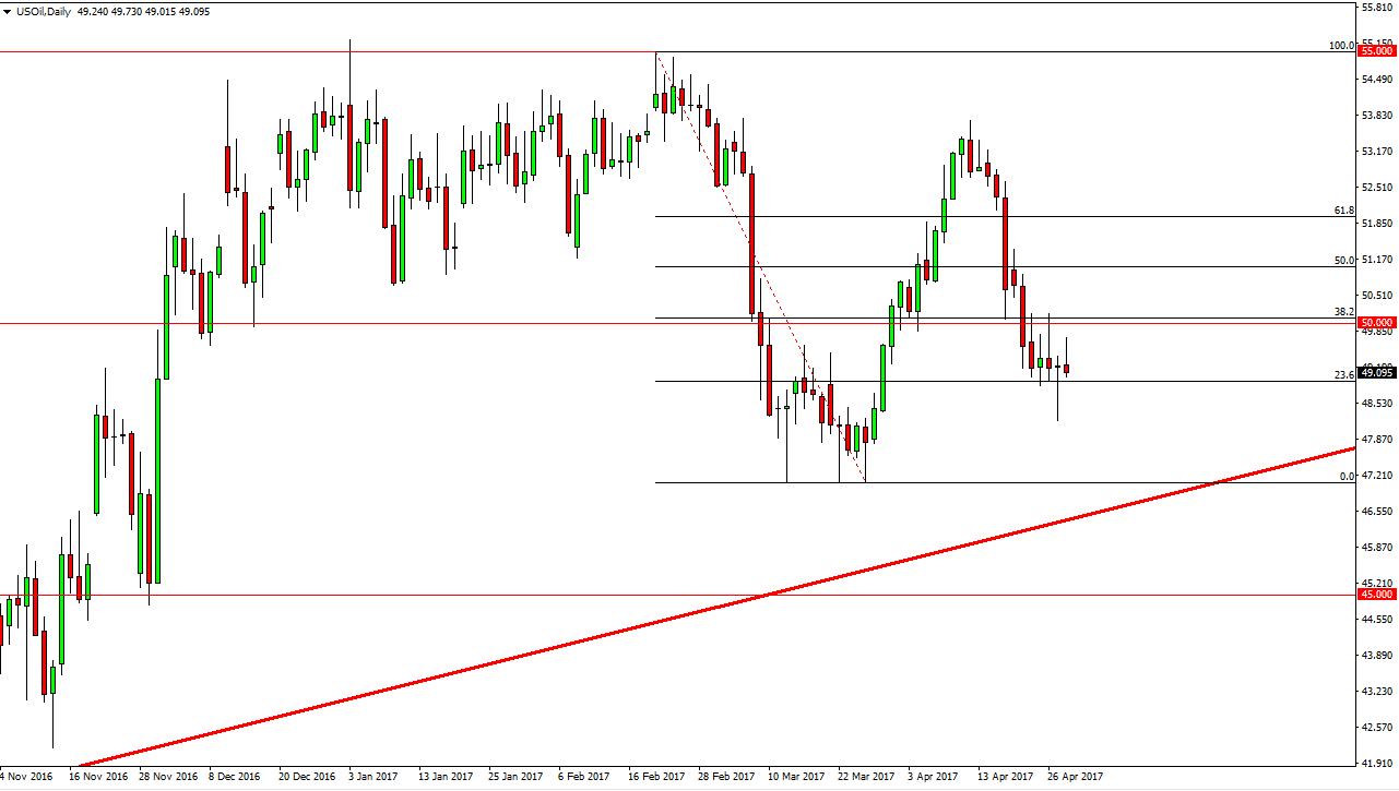 Venerdì i mercati del Brent aprono con un gap rialzista, raggiungendo livelli superiori alla stella cadente di mercoledì, poi invertono la rotta mostrando segni di debolezza. Tuttavia, crediamo che il martello, che si estende fino al livello sottostante dei 50$, continuerà a fungere da forte supporto. Se romperemo al di sopra della punta della stella cadente di venerdì, il mercato si dirigerà verso il livello dei 53$ e poi forse anche verso il livello dei 55$. In alternativa, se rompiamo sotto il livello chiave dei 50$, sarebbe un segnale molto negativo e potrebbe portare il prezzo verso livelli molto più bassi, forse verso i 47$ e poi fino ai 45$. In ultima analisi, il mercato si mostrerà instabile e volatile, ma dovrà prendere una decisione. Crediamo che una rottura in ribasso sia probabile, ma non investiremo denaro in questa materia prima fino fintanto che non ci sarà maggiore chiarezza. Nel frattempo, aspettatevi un andamento fortemente oscillante all’interno di una gamma definita.