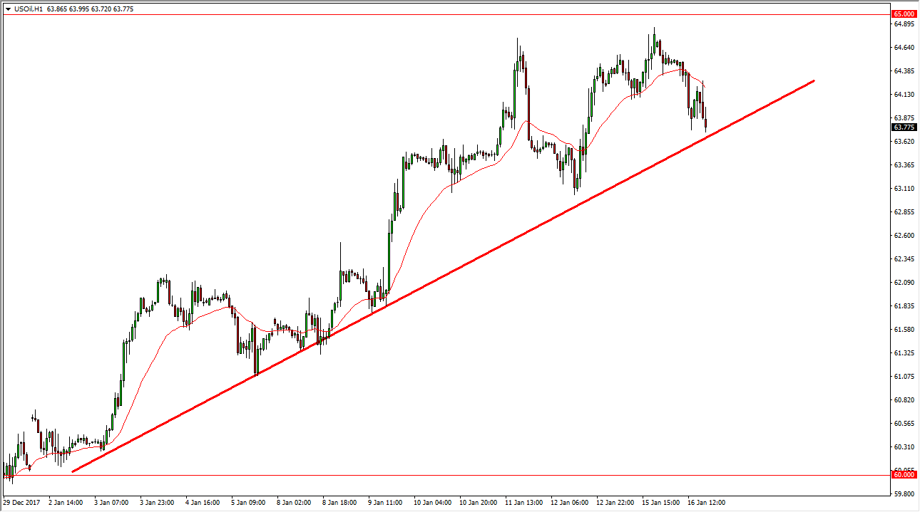 Martedì i mercati petroliferi si muovono in ribasso, con il rientro degli americani dalla giornata festiva che commemora Martin Luther King. I trader dei fondi speculativi hanno dilatato leggermente il mercato che poi si mosso in ribasso dagli ampi numeri tondi. Pertanto, ha un senso se stiamo toccando la linea di tendenza rialzista.