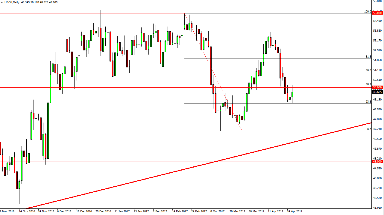 Anche i mercati del Brent si muovono avanti e indietro, mostrando segnali di volatilità in prossimità del livello dei 52$. Se romperemo sotto il fondo della candela di martedì, sarebbe garantita una mossa ribassista verso la regione dei 50$. D’altra parte, una rottura sopra la gamma di oscillazione di mercoledì potrebbe portare il prezzo del combustibile verso il livello dei 53$, che in precedenza ha funto da resistenza e ancora prima ha funto da supporto della precedente area di consolidamento. In ogni caso, prevediamo una forte volatilità e un andamento incostante; dovrete prestare attenzione alle notizie che potrebbero circolare sul mercato per attendere una nuova mossa dei prezzi. Ci sono ancora parecchi timori sulla possibilità che l’OPEC riesca a portare avanti i tagli alla produzione e naturalmente permane la preoccupazione su un livello sufficiente della domanda. Quest’ultimo problema appare alquanto burrascoso e persino con l’aumento della richiesta che abbiamo visto la scorsa settimana, il risultato si è dimostrato insoddisfacente. Crediamo che continueremo a vedere gli operatori di questo mercato piuttosto nervosi.