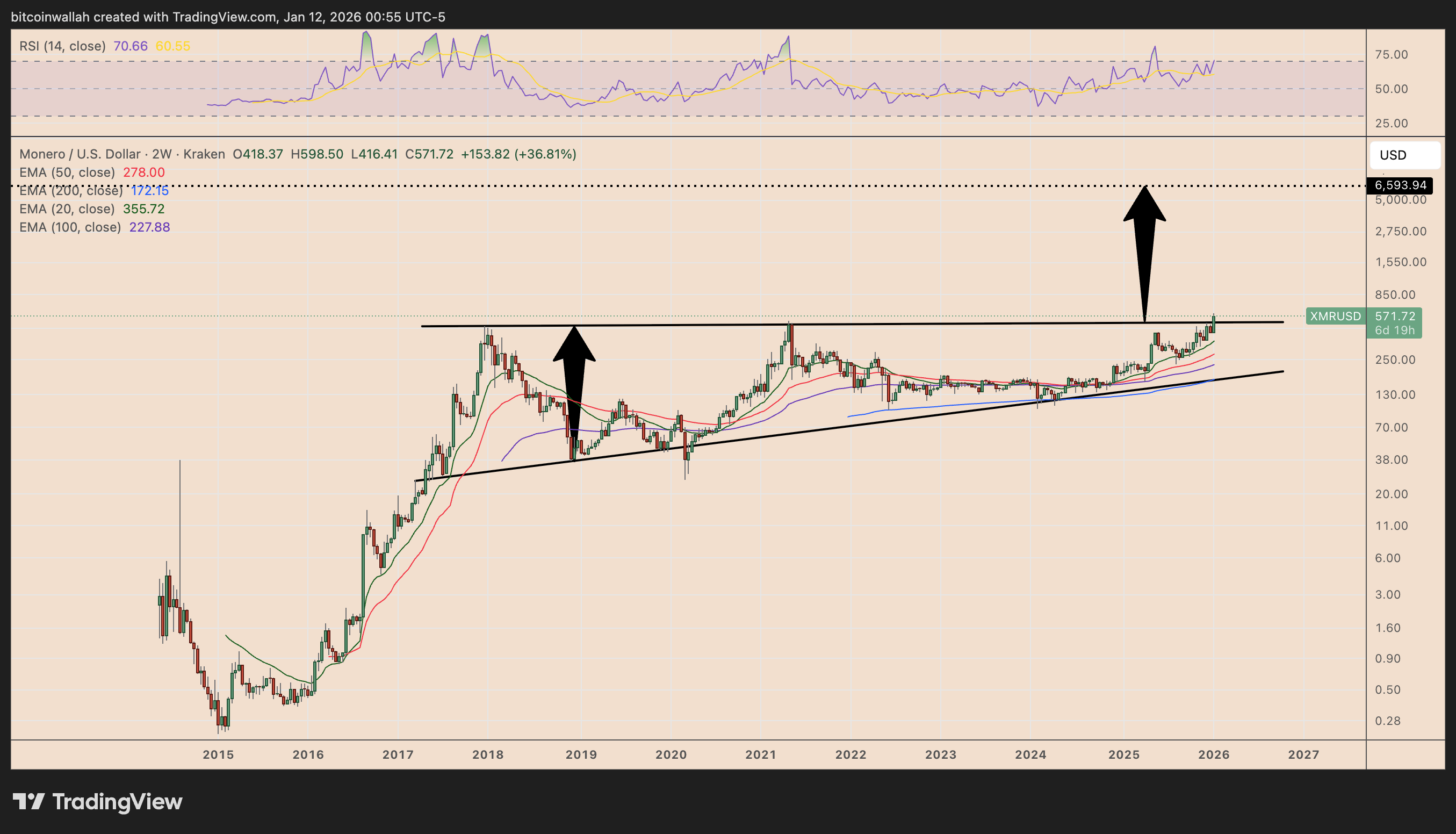 Se lo slancio rialzista dovesse persistere, il prezzo di XMR potrebbe crescere di oltre il 1.000% nel 2026. Vediamo come.