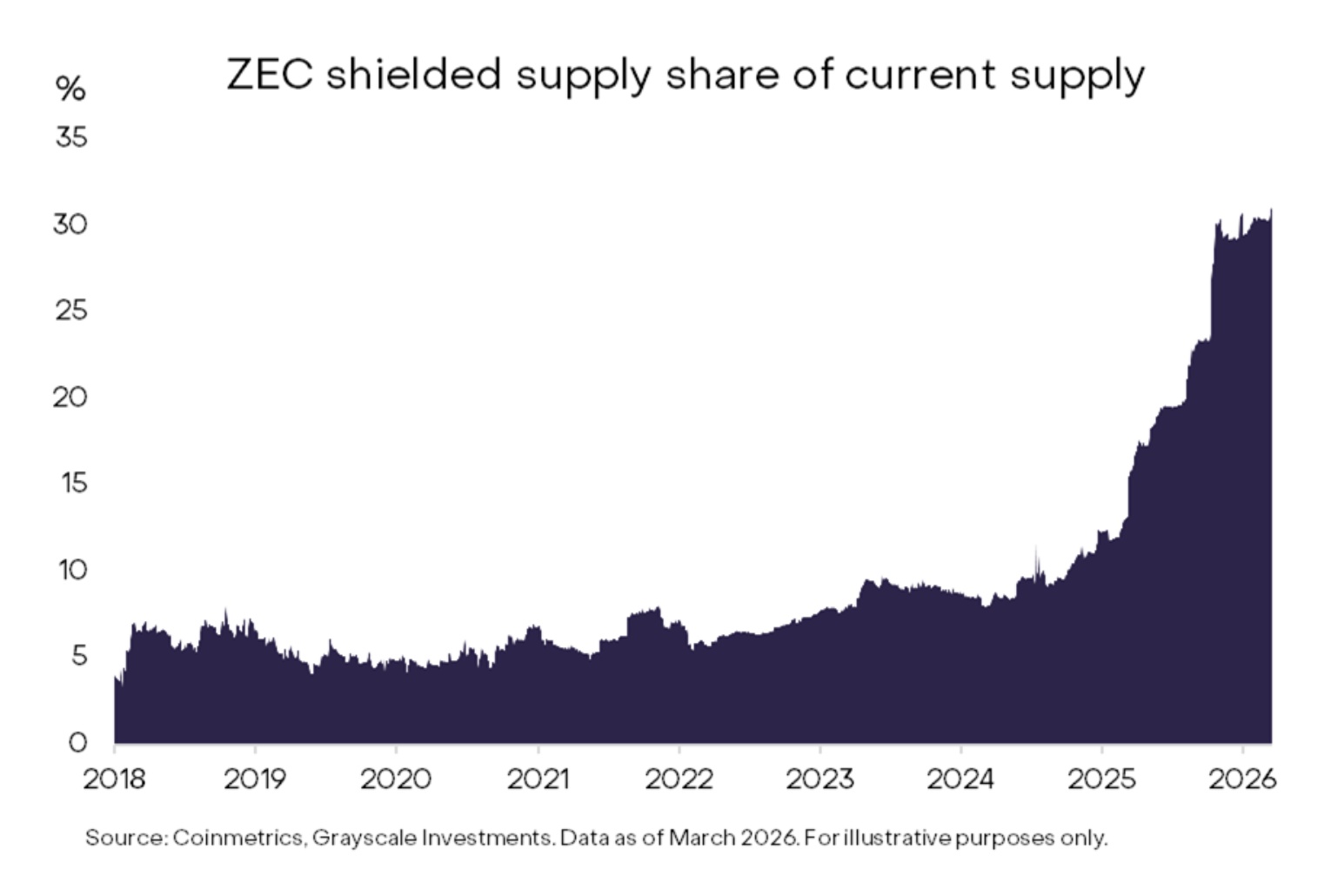 Grayscale ha spiegato che le funzioni opzionali di “shielding” di Zcash potrebbero diventare più preziose man mano che l’IA rende più semplice rintracciare wallet, monitorare trasferimenti e analizzare i comportamenti finanziari su blockchain trasparenti.