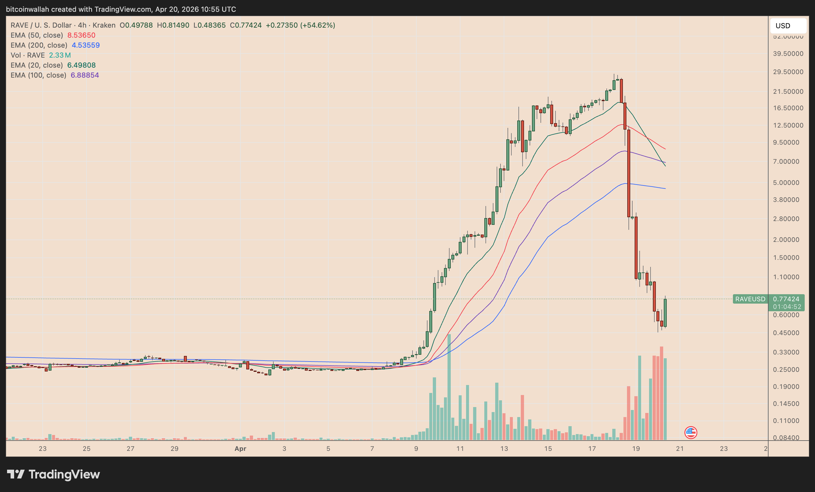 Il token RAVE di RaveDAO ha subito un drammatico ciclo di boom e crollo a metà aprile, esplodendo di migliaia di percento per poi crollare di circa il 95–98% dal picco, in mezzo a pesanti accuse di manipolazione del mercato da parte di insider.