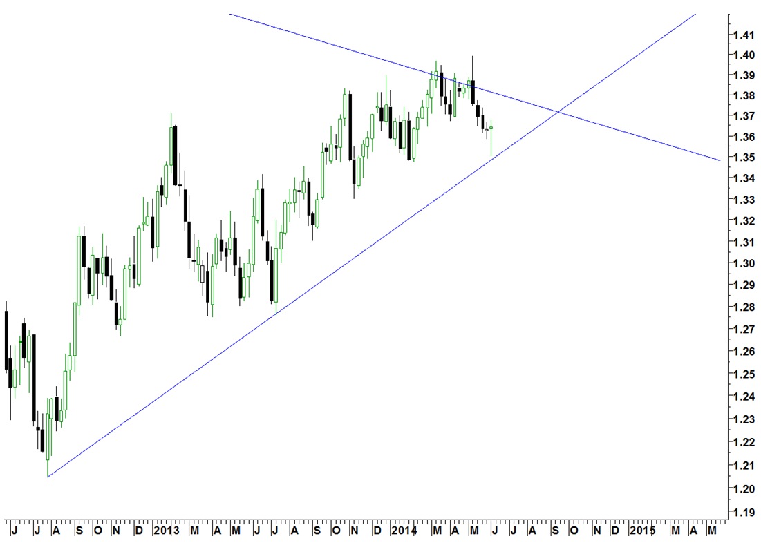 La banca centrale neozelandese deciderà sui tassi di interesse l’11 giugno. Tecnicamente un cambio molto interessante al momento è quello tra Nzd e Jpy. La forza dello Yen delle ultime settimane ha alimentato una correzione che si è fermata esattamente sulla trend line rialzista in essere dal 2012. A questo punto è abbastanza evidente che la formazione a cuneo che si sta sviluppando presto richiederà una soluzione o verso l’alto o verso il basso. Sotto 85.80 sarà opportuno andare short ed a quel punto sarà prevedibile assistere ad un aumento della volatilità sui mercati finanziari; viceversa sopra la down trend line di breve potremmo assistere ad una ripresa del bull market con il massimo di aprile da mettere nel mirino.