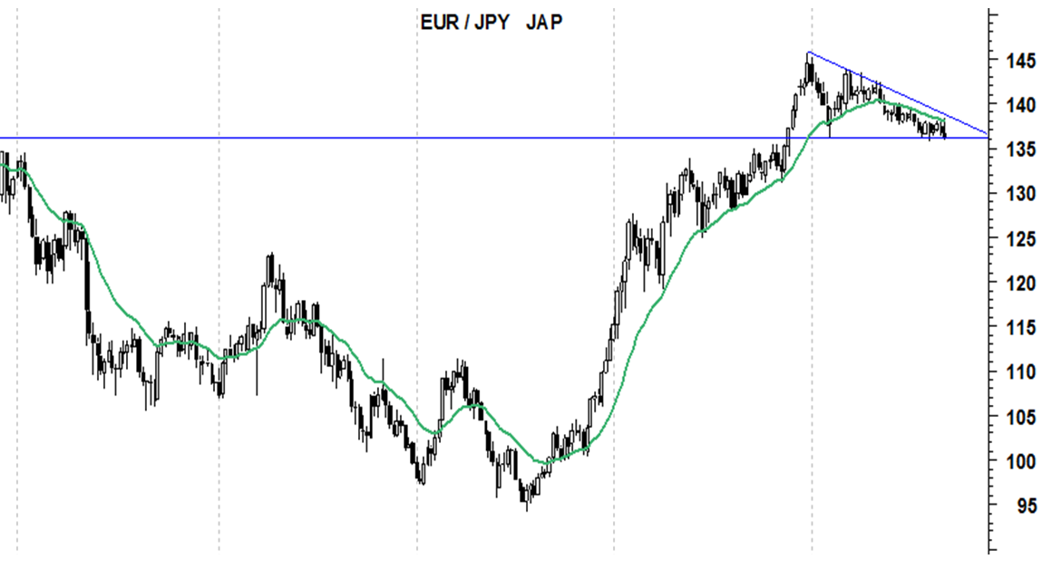 Vedremo se il Governatore Kuroda venerdì 12 fornirà ai mercati quelle notizie che servono per indebolire lo Yen. Se contro Usd lo Yen in effetti si è indebolito tornado sopra 105, contro Euro la situazione è delicata con un cambio che staziona sotto 136. I dati di questa settimana del 8 settembre di deficit delle partite correnti e del Pil oltre a quelli di venerdì 12 della produzione industriale, potranno aiutarci ad interpretare meglio la situazione. Tecnicamente EurJpy è in una situazione delicata. Come si vede dal grafico siamo ormai arrivati in prossimità dei minimi del 8 agosto di 135.64 ed una rottura ribassista di questo livello, temiamo innescherebbe un’ondata di vendita di EurJpy decisamente importante di fatto accantonando le ipotesi bullish. Solamente sopra area 138,50 si potrà tornare a scommettere contro la valuta nipponica.