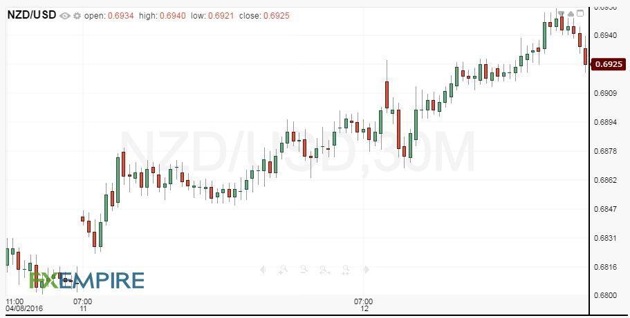 Nelle prime ore della sessione, la coppia NZD/USD si è avvicinata ai massimi degli ultimi dieci mesi, prima di scendere dal massimo intragiornaliero a quota 0,6952, con un massimo assoluto toccato il 31 marzo a quota 0,6966. Il cambio ha chiuso a quota 0,6940, in rialzo di 0,0017 punti ossia dello 0,25%. Il netto apprezzamento di martedì è stato alimentato dalla propensione verso gli asset rischiosi, come il greggio. Il successivo rialzo di oggi è stato sostenuto dai dati positivi sulle esportazioni cinesi.
